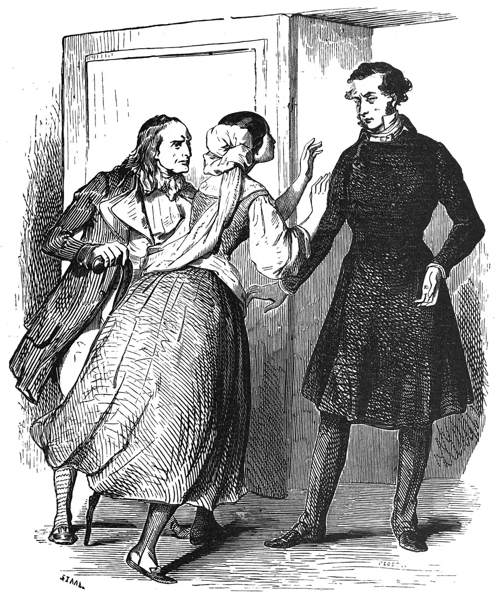 "Ah, Danglars!" whispered Caderousse, "you have deceived me — the trick has been played; but I cannot suffer a poor old man or an innocent girl to die of grief. I will tell them all."