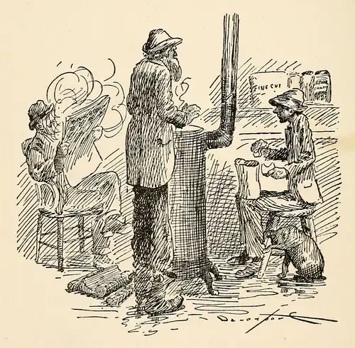 I looked down by my chair, and there he sat oily and fat, as sleek as a seal. I looked over behind the counter where they kept the sardines and they looked pretty good. I got up and sorter stretched, when John Wolfard, lighting a new cigar, said, “It’s enterprise that you boys lack, the town’s all right.”