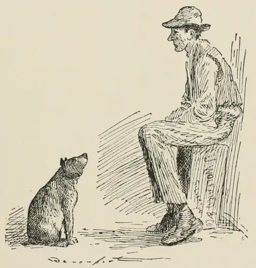 later life he only waddled after them and never got near enough to make a cat more than spit; but the cat evidence on his eyeball was plain to be seen. That was perhaps why he was always trying to wipe out the old grudge. As he got very old, he got to be a painful sight to everybody but himself. He had curvature of the spine, so that his hindquarters got to a place about the same time as his forefeet did, and that impediment, with the full scratched eye that wouldn’t close, made Bob an unpleasant sight, and even the Wolfard family that was large cut him socially, as did most all others. He was short tailed and so fat that it made him pant with his tongue out to wag his tail, but somehow or other he always wagged at me, notwithstanding the effort.