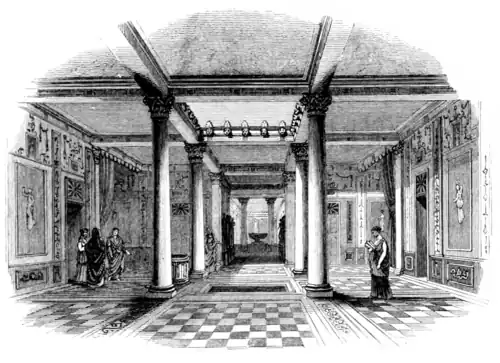 It has been my endeavour to give an agreeable variety, play and contrast to the different parts of the interior, which I hope will not displease you; and I trust that the drawings and descriptions of the several apartments, their architectural character and decoration, which will form the subject of my next letter, will shew that while I have adhered to one uniform style throughout, I have neglected neither the variety in the individual parts, nor harmony and unity of expression in the ensemble, but have reconciled together those two, somewhat contrary, yet highly desirable qualities.[1]