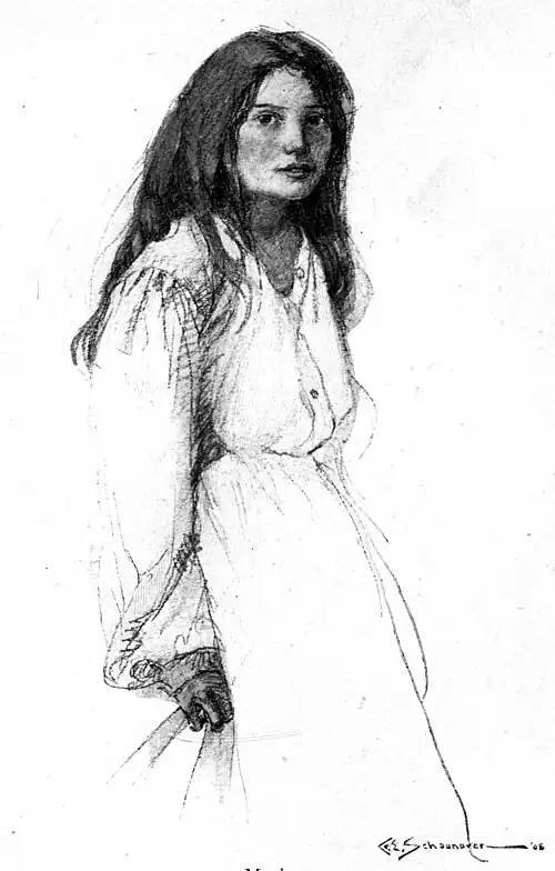 Nathaniel reached out hesitatingly, but not to take the weapon. Gently, as though his touch was about to fall upon some fragile flower, he drew the girl to him, took her beautiful face between his two strong hands and gazed steadily and silently for a moment into her eyes.