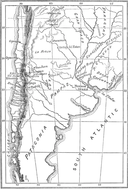 I.— Map of the Viceroyalty of La Plata and of the Kingdom of Chile, excluding Upper Peru and Southern Patagonia.