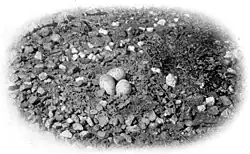 Dottrel (Peltohyas australis).[1]—As I met with this species at Lake Austin, I looked forward with a certain amount of confidence to not only seeing it again but to finding its eggs. I had been at work just a week before I encountered the first pair. They were feeding amongst the samphires growing on the margin of an arm of the largest lagoon in Lake Violet. Four days later, and some two miles away, I came across a flock of quite twenty. Under the circumstances I felt justified in dissecting a single bird to ascertain as near as possible the probable date of their breeding. I judged I must wait fully three weeks before I could expect eggs. I determined, therefore, to keep watch, without disturbing them more than was absolutely necessary. On 19th August I was on the same samphire flat again, and after searching it carefully I saw a single bird running away to the left in a rather suspicious and suggestive manner. If I stood still she would halt too and watch me. On my moving nearer to the point from which she appeared to have run, she tripped a little further away, always keeping an eye on me. Feeling sure I was near the nest, I made a mark and commenced a systematic search around it. She halted on a little eminence and watched me silently. After a quarter of an hour's patient hunting, to my great delight I caught sight of the three brown eggs, half-covered with flakes of sun-baked clay. Had they been entirely covered I might easily have missed them, so closely did they assimilate to the dark ferruginous soil on which they lay. The black markings on these eggs being small renders them much less conspicuous than the more boldly marked eggs of other allied species. The nest was a very shallow depression, probably scratched out by the parent bird, and had no lining of any kind whatever, the flakes of mud being probably added after the eggs were laid. Surrounding the nest were a few pieces of white quartz and nearly black ironstone. The only vegetation was a sparse growth of stunted samphire, the tallest sprays of which did not exceed 6 inches in height. After packing the eggs, I turned my attention to the female. She had not moved from her point of vantage I walked towards her, and she ran for a few paces as before, but now she gave utterance to a low note resembling the syllable "Kr-root," the r being uttered in rather a guttural manner. There was no sign of the male bird. Next day, after blowing these eggs, I returned to the nest, and, replacing them, with the flakes of clay, as nearly as possible as I found them, I photographed them in situ. Much to my disappointment, this was the only nest of these rare eggs I found. I visited the locality again and again, and often encountered the main flock, but, despite much searching, all was in vain. I can only surmise that, the species being resident, many pairs may breed during the summer rains, when insect life is so much more abundant in these interior regions. No doubt beetles and such creatures form a large proportion of the diet of these interesting birds. When feeding a flock keeps in open order and one or other is constantly on the run. If approached carefully they are not timid, but if fired at usually fly away to some distance. Amongst the samphires this Dottrel is very inconspicuous, and looks grey rather than ferruginous in colour. This may be due to the glare, which is very trying to the eyes until one is accustomed to it. In addition to the syllable "Kr-root" before described, this bird has a sharper call, which can be heard at some distance; it resembles the word "quick" uttered in a slightly metallic tone.