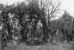 Clump of Scrub where the Bower-Birds built. Milly Pool.
