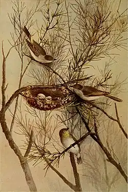 - ↑ Since writing my remarks on Amytornis gigantura I have seen The Victorian Naturalist for February, 1910. In this journal is an account of the finding by Mr. C. G. Gibson of the nest and eggs of Amytornis macrurus. The account is accompanied by a description of the nest and eggs by Mr. A. J. North, and is illustrated by Mr. Gibson's photograph of the nest in situ. Nothing could have been more opportune. A distinct superstructure in the form of a dome over the nest is observable in the photograph of the nest of A. macrurus. As my notes emphasize, the latter feature is quite absent from the Lake Way nest of A. gigantura.