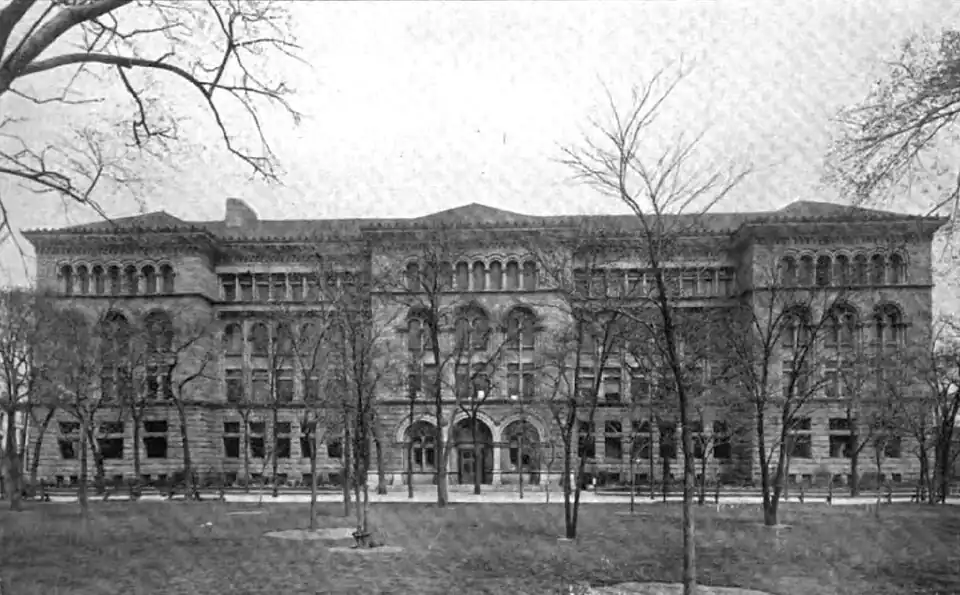 The Chicago Public Library assumes a position next to that of the Boston and New York libraries, but differs from them to the extent that it is, in fact, as well as in name, a popular library. Its collections are restricted in the main to books that would be called for by the general public and not by the scholar; the student of literature and the humanities being left to the Newberry, and the one in science and the useful arts to the John Crerar. The same principle applies to the building, which is an imposing but simple Renaissance structure, the idea of fitness for use being uppermost. This building was erected in 1898. It is an interesting fact that the Chicago Library originated in a gift of 7,000 books gathered in England by Thomas Hughes, the author of ‘Tom Brown at Rugby,’ and presented to the people of the city after the great fire of 1871. This humble nucleus has grown into a collection of about 800,000 volumes distributed through the central library and its 45 branches.