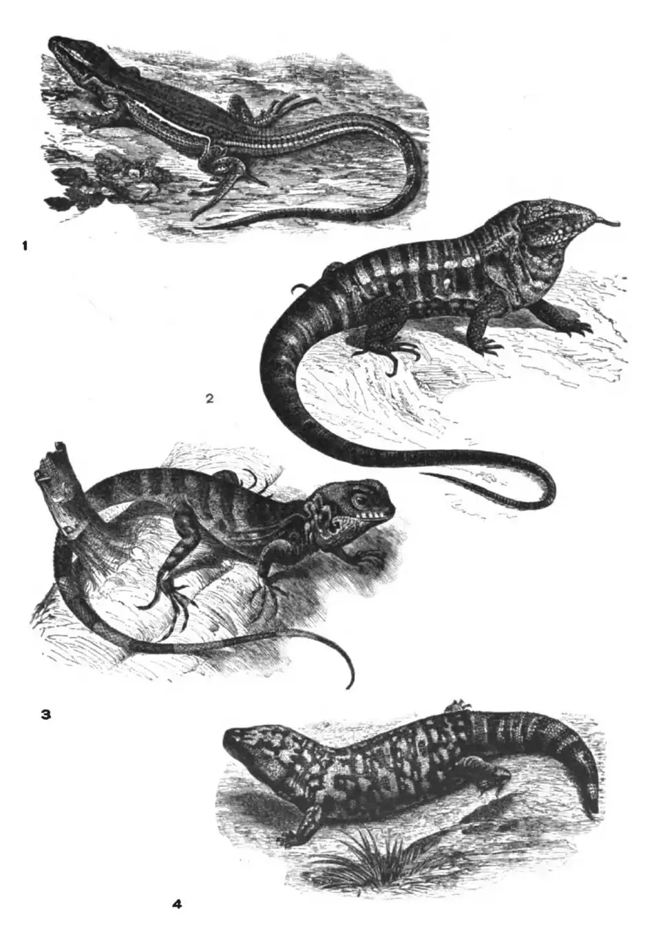 LIZARD, a subclass of reptiles, whose anatomical features and classification have been described under Lacertilia. A general account of their habits and ecology has been reserved for the present article. Lizards as a group are of comparatively recent origin, most of the fossils known not being older than the middle of the Tertiary, when representatives of many of the modern genera were in existence. The Pleistocene rocks of Queensland have furnished skeletons of several gigantic extinct representatives of the monitor family, one of which (Megalonia) was about 30 feet long. The lizards, as a group, are remarkable for the great variety in size and shape, and in the character of the skin-armature and the dentition. These variations are usually manifestly adaptations to the local environment.