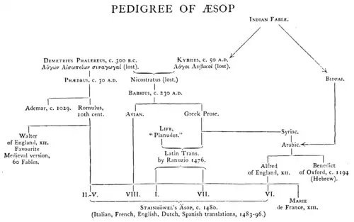 (1) Medieval life of Æsop, attributed to Planudes. (I. in Pedigree.)