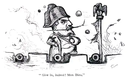 "Vive la guerre!" cried poor Louis, rushing blindly at his foe. Well and nobly he fought, but he could not stand his ground. When he did hit, indeed, he hit to some purpose; but seldom could he reach out far enough to do much damage. Foot by foot, and yard by yard he gave way, till at last he was forced to take refuge in his arbor, from the window of which he threw stones at his enemy to keep him back from following.