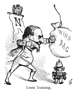 Meanwhile, by Mark's advice, William ran off to the Brummagem Bruiser, who put him up to all the latest dodges, and exercised him in the noble art to such good purpose that on his first encounter with Louis after breakfast the next morning, he hit out a crushing blow from the shoulder and knocked his enemy down. Louis was soon on his legs again, and he, too, did good execution with his fists; but he was clearly overmatched, and at the end of the first round he had been punished pretty severely.