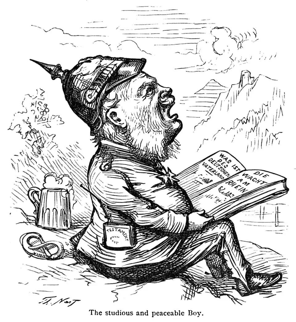 "Hot work, isn't it, my boy?" said William chaffing him as he mopped the perspiration from his steaming forehead. "This is what you call your baptism of fire, I suppose, aye?" Then he wrote home to his mother, on the back of a half-penny post card, so that all the letter-carriers might see how pious he was: "Dear Mamma, I am fighting for my Fatherland, as you know I call my garden. It is a fine name, and creates sympathy. Glorious news! Aided by Providence, I have hit Louis in the eye. Thou may'st imagine his feelings. What wonderful events has Heaven thus brought about! Your affectionate son, William." Then he sang a hymn, and went on with the second round.
