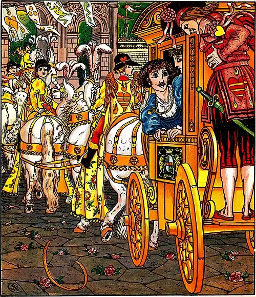 Twice afterwards on the journey there was the same noise, and each time the Prince thought that it was some part of the carriage that had given way; but it was only the breaking of the bands which bound the heart of the trusty Henry, who was thenceforward free and happy.