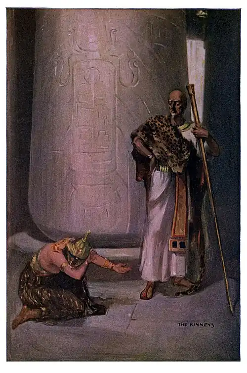"I would break the might of him who has ensnared the people of Kamt and broken their allegiance…. The priests of Isis will softly follow in the wake of the stranger, as he turns his footsteps within the hallowed nook…. Horror-struck, they will see the murderer standing beside his victim, then they will loudly call upon the people of Kamt to quit their rejoicings, to forget their songs and laughter and behold the hideous crime committed by him who dared to call himself the son of Ra!"