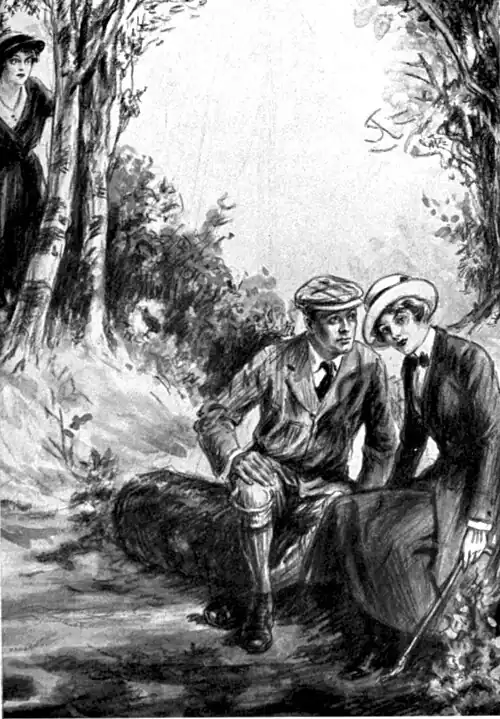 I was coming down one of these, making no more noise than the squirrels, when just before it crossed the road I saw something and stopped. There, sitting side by side on a log, were Sylvia Hesketh and a man. Close to them, run off to the side, was a motor and near it tied to a tree a horse with a lady's saddle. Sylvia was in her riding dress, looking a picture, her eyes on the ground and slapping softly with her whip on the side of her boot. The man was leaning toward her, talking low and earnest and staring hard into her face.