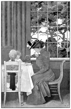 THE eventful day had arrived at last, the day which, when first named, had seemed — like all golden dates that promise anything definite—so immeasurably remote. When it was first announced, a fortnight before, that Miss Smedley was really going, the resultant ecstasies had occupied a full week, during which we blindly revelled in the contemplation and discussion of her past tyrannies, crimes, malignities; in recalling to each other this or that insult, dishonour, or physical assault, sullenly endured at a time when deliverance was not even a small star on the horizon: and in mapping out the shining days to come, with special new troubles of their own, no doubt—since this is but a work-a-day world!—but at least free from one familiar scourge. The time that remained had been taken up by the planning of practical expressions of the popular sentiment. Under Edward's masterly direction, arrangements had been made for a flag to be run up over the hen-house at the very moment when the fly, with Miss Smedley's boxes on top and the grim oppressor herself inside, began to move off down the drive. Three brass cannons, set on the brow of the sunk-fence, were to proclaim our deathless sentiments in the ears of the retreating foe; the dogs were to wear ribbons; and later—but this depended on our powers of evasiveness and dissimulation—there might be a small bonfire, with a cracker or two if the public funds could bear the unwonted strain.