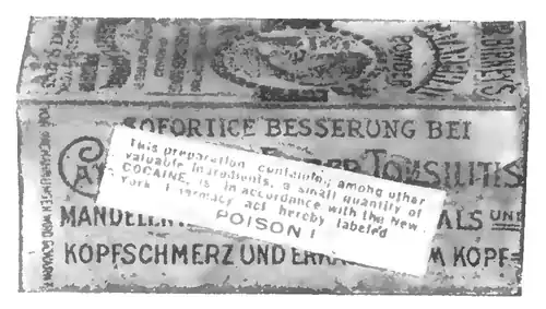 Naturally these owners and exploiters of these mixtures claim that the small amount of cocain contained is harmless. For instance, the "Crown Cure," admitting 2