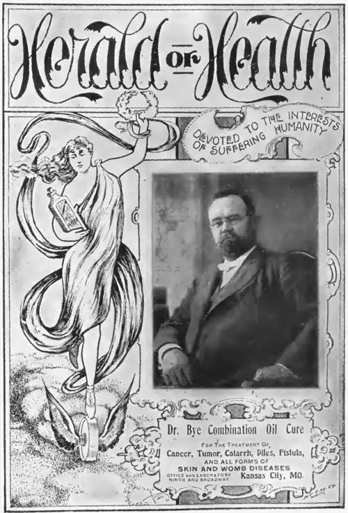He belongs to most of the fake medical organizations in the country, whose diplomas (purchased) he proudly displays on his walls. The remaining two members of this estimable clan do a "sooth, balmy oil" business, under the title "The Dr. Bye Company, Kansas City." They make the same ridiculous claims, and, from the bulk of their advertising, would seem to be prospering beyond the other branches at present.