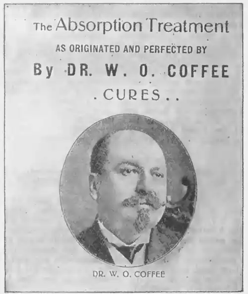 "Absorption Method" is the professional catch-phrase of Dr. W. O. Coffee of Des Moines, Iowa, where he runs an eye-and-ear infirmary, and does an extensive bunco business by mail. Dr. Coffee's stock in trade as an oculist is a large supply of cheek and a copy of "External Diseases of the Eye," by Haab of Berlin. Professor Haab is a genuine authority and his book is an excellent foundation for eye practice, but not as Coffee uses it. The Des Moines expert's interest in confined to the pictures, which are in color and are rather painful to look at; just the sort of thing to set one worrying about his own eyes. Herein lies their value to the shrewd Coffee. He gets up a book of his own, all about himself and his successful Absorption Treatment; and, applying the treatment to the Haab volume, absorbs the illustrations whole.