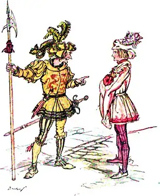 “Then right about turn and get to it,” said the soldier, lowering his pike.