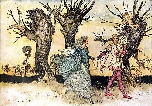 “My dear, they say now that you are not the princess, but an impostor like myself. This is indeed a magic door.”