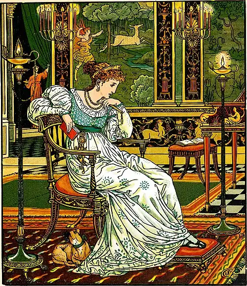 The King and Queen resolved that the ambassador should see Désirếe, but the Fairy Tulip said to the Queen, “Take care, Madam, that you do not introduce Becafigue to the Princess; he must not see her yet, and do not consent to let her go until she is fifteen years old; for if she quit her palace before then some misfortune will befall her.” And the Queen promised to follow her advice. On the ambassadors arrival, he asked to see the Princess, and was surprised that that favour was denied him. “It is no caprice of ours, my Lord Becafigue,”