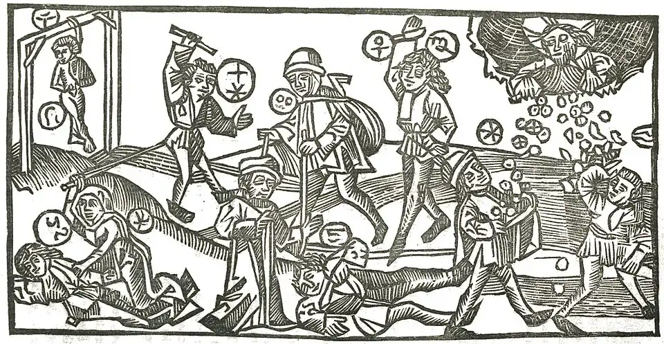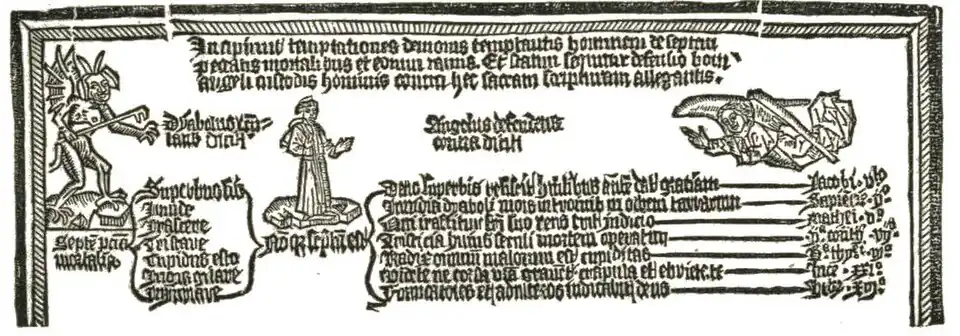 - ↑ The bibliographic title is Ars Moriendi, or, literally, The Art of Dying, but the work is more clearly described by the paraphrase How to Die Becomingly. It is also known as The Temptations of Demons.