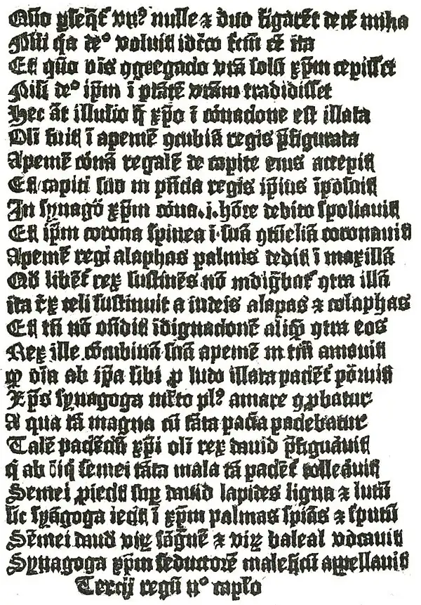 - ↑ There is an edition, with a text in Latin and in German, which was printed at Augsburg in 1471; there are many editions in German only, some without dates, and others with dates of 1476, 1492, and 1500; a Flemish edition by Veldener in 1483; and various editions in French.