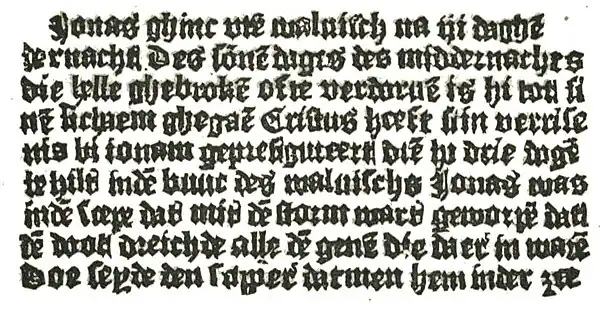 - ↑ This work was in use as late as the reign of Charles v. It was enjoined by him that a printer should furnish without alteration "the little book commencing with the alphabet, the little book which directs how to bless the table (grace at meals), and the little book which directs how to answer at the holy mass." Van der Linde, Haarlem Legend, p. 2.