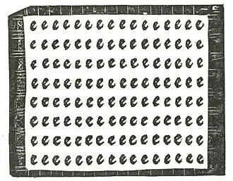 - ↑ Berjeau, who accepts this Abecedarium as one of the first products of the invention, says that impositions of eight pages seem more complex than they really are—that the printer had but to fold a sheet, to mark the pages and then unfold the sheet, to see the method at a glance. This reasoning is specious, but it is inconclusive. It was the argument of the courtiers with Columbus after he had stood the egg on its end. Anybody can do it. Simple as the process may seem, the imposition of eight pages of type in one form was not done by any of the early printers, and we have to infer that they did not know how to do it.