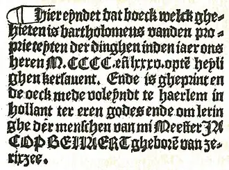 - ↑ Hessel's translation, as given in The Haarlem Legend of Van der Linde, p. 8.