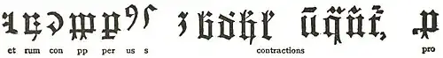 - ↑ The text letters are of the form known to librarians as lettres de somme, or letters of account, which may be understood as the carelessly made letters then used in books of account. The letters of the large lines are of the form known as lettres de forme, or letters of precision, the angular and carefully made letters of fine books. The lettres de somme will be defined in this book under the name of Round Gothic; the lettres de forme, under the name of Pointed Gothic.