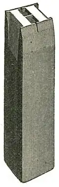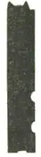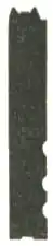 Figures 2 and 3 represent the interior sides of the mould. For the purpose of clearer illustration, the half of the mould, Figure 2, is shown reversed, or upside down; but when this half is connected with its mate, the two halves appear as they do in Figure 1. These two halves differ from each other only in a few minor features. They are so constructed that, when joined, the sides which determine the body of the types are in exact parallel, and at a fixed and unalterable distance from each other. In Figure 2, the ridges which make the nicks are noticeable; in Figure 3 the cast type is shown as it appears before it is thrown from the mould, with jet attached.[3]