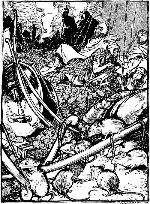 “The people believed he was the real one after all, and as Prexaspes turned round and vowed he had not slain him he reigned in peace for eight months. Cyrus, thou wilt remember, was a great and mighty king. It is told of him that when he was beginning to be successful, certain Greeks—the Ionians and Aolians—sent to beg for his protection, whereas they had ignored him when he asked them to revolt against Croesus. But Cyrus sent back a message in the form of a story. ‘There was once a piper,’ said he, ‘who piped by the sea- shore, thinking the fish would leap out of the water on to the land. But the fish remained unmoved. Then the man fetched a net and dragged a quantity of them ashore, whereupon they all began to leap and dance. ‘Do not trouble yourselves,’ said the piper. ‘I want none of your leaping and dancing now.’”