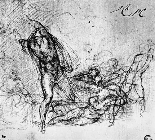 - ↑ In 1559. Daniello da Volterra was afterwards called "the breeches-maker" ("Il braghettone"). Daniello was a friend of Michael Angelo. Another of his friends, the sculptor Ammanati, condemned these nudes as a scandal. Michael Angelo was not even supported on this occasion by his disciples.
