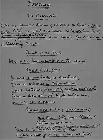 A page from the manuscript of The Dynasts. Reproduced through the courtesy of the British Museum.