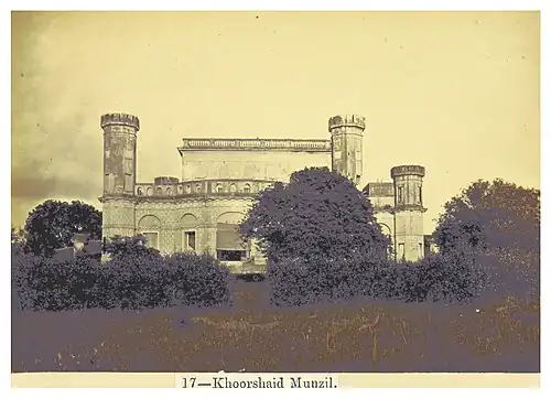 As a contrast to the purpose that the Khoorshaid Munzil was probably intended to serve, and the demoniac purpose that it did attempt to serve, it is now turned to a heavenly purpose : it is the Martiniere Girls' School ; the scarped ditch is now a bright green lawn for the children's play-ground, the towers make airy bedrooms for the little girls, and all the inmates seem to be supremely happy.