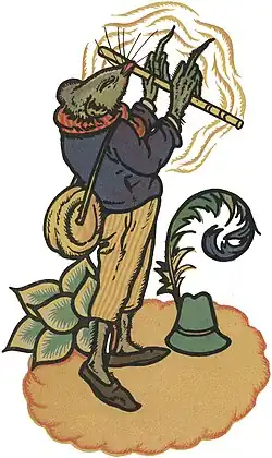 Here a song burst from the flute. It was so sweet, so brimful of cheer that the poor Frog leapt to his feet in delight. He tapped his forehead in wonder: “Why, what’s become of all my pain?“ He touched his shoulders, then his back.— —Not a twinge! He felt no more chills running down his spine, no more fire in his knees. Healthy blood once more flowed merrily through every vein in his body.