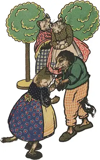 “‘What your Aunt tells you is all slander,‘ Lap snapped back. ‘If the cellar could speak, we’d hear tales of her sneaking about with her children! And as for that ill-mannered kitten of hers, White-Whiskers, who still goes about barefoot, he has already scratched my father’s nose!‘