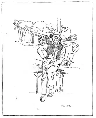 "I 'ope," 'e sez, "the 'Uns don't git my cars.