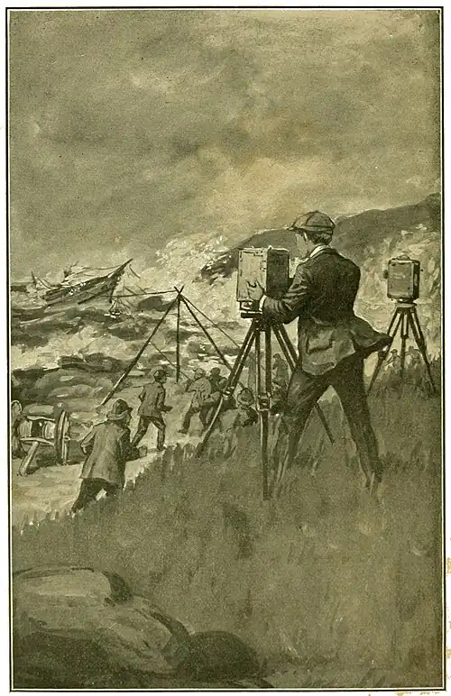 BLAKE & JOE, LEAVING THEIR AUTOMATIC CAMERA WORKING, AIDED IN THE WORK OF RESCUE.—Page 193.