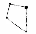 The northernmost star of the group that marks the head is also a double. This double consists of two stars of the 4th and 8th magnitudes, the larger one being yellow and the smaller purple.