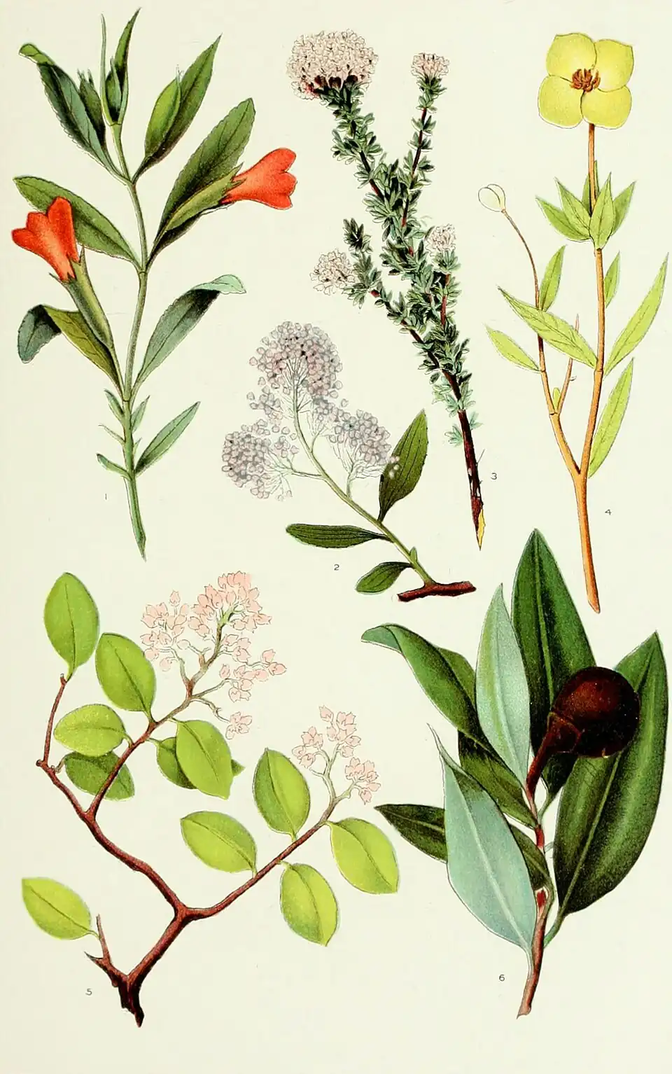 Flora. As California presents almost every variation of climate known on earth, ranging from that of the tropics to that of the Arctic regions on its high mountains, and from a copious rainfall to the aridity of the desert, it naturally presents a very wide variation in its flora. The influence of climate upon flora is nowhere more strongly marked than in this State. The tree flora of California, as of the entire western part of the country, is characterized by consisting almost entirely of coniferæ, while broad-leafed trees are very few in number, consisting of oaks, madroña, and a few other species very limited in number and distribution. The trees of all species are of great size. For illustration, see Sequoia.