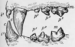 | Permanent dentition: i, incisors; c, canines; p, premolars; m, molars. In the upper jaw p3 is the upper carnassial, and in the lower jaw m indicates the lower carnassial tooth. |