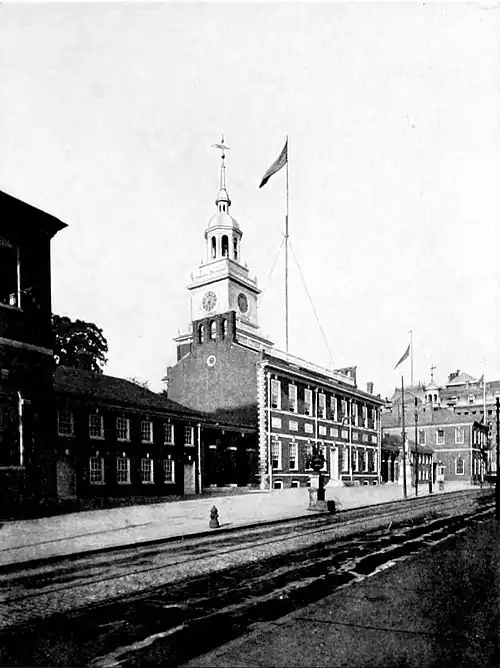 From 1763 to 1774 Philadelphia was prominent in resisting British aggression, though the Loyalist party was strong, and most of the Friends opposed warfare; and here most of the important official events of the Revolution took place. In 1773 (October 17), during the excitement over the expected arrival of the tea ships, the people met in mass meeting and passed resolutions which, on November 5th, were readopted at Boston. The first Continental Congress met in Carpenter's Hall, September 5, 1774; the second met May 10, 1775, in the State House; and there, on June 15th, Washington was appointed commander-in-chief of the Continental army. In 1776 Congress met for the third time in the State House, and there, on July 4th, the Declaration of Independence was adopted. Philadelphia was held by the British from September 27, 1777 to June 18, 1778, and during this period, while the American army was at Valley Forge, was the scene of much gayety. On May 18, 1778, the famous entertainment called the Mischianza (q.v.), was given in honor of General Howe, who was about to depart for Europe. On October 4, 1777 the battle of Germantown (q.v.) was fought. On May 2, 1787, delegates from the different States assembled here, and, after almost four months of debate behind closed doors, adopted a Constitution for the United States, September 17th. On March 11, 1789, the city received a new charter from the Legislature. Epidemics of yellow fever in 1793 and 1798 caused great loss of life, at least 4000 dying in the former year and almost 5000 out of the 30,000 who remained in the city in the latter.