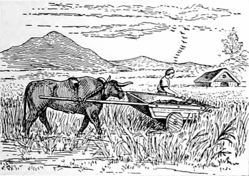 which was pushed through the grain by an ox