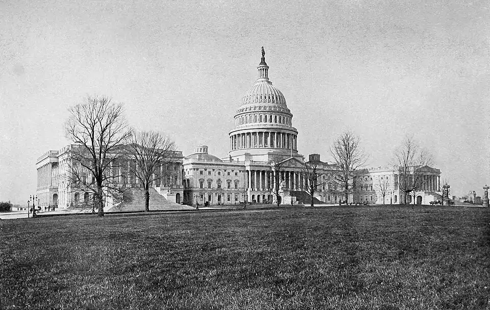 On August 24, 1814, an English force of about 5000 men under General Ross and Admiral Cockburn defeated an American militia force of about 7000 at Bladensburg (q.v.), and, advancing to Washington, set fire to the Capitol, the President's house, and other public buildings, all of which, however, were replaced within the next few years.