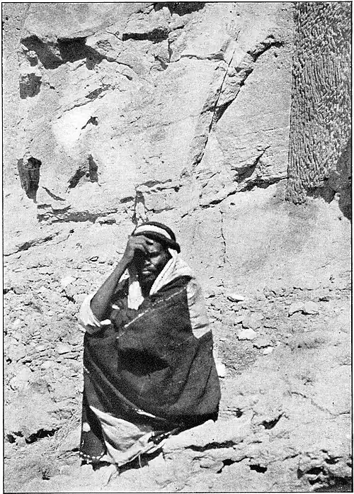 At ten o’clock we descended into the šeʻîb of al-Ǧille, known as Umm Ǧurfejn in its middle part, where there was a settlement of liberated black slaves. Their chief was called Faẓlallâh. They live like the Arabs, breeding goats as well as a few sheep and camels. They comprise thirty-six families and obey Eben Maḳbûl, the head chief of the ʻImrân. Many of them are the descendants of Egyptian soldiers who guarded the various halting places on the Pilgrim Route leading from Egypt by way of al-ʻAḳaba to al-Medîna and Mecca.