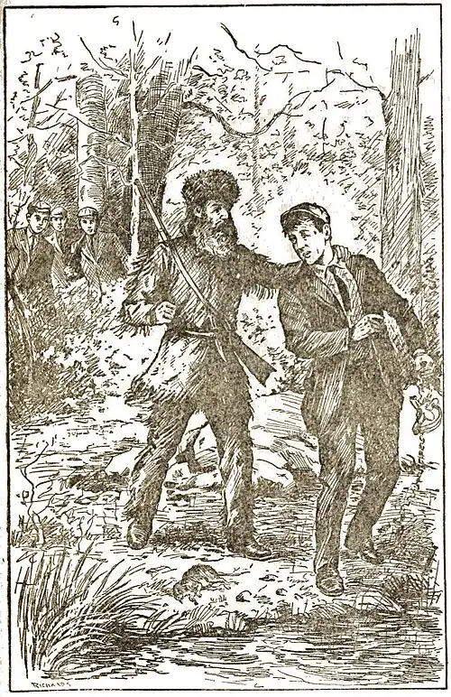 "Jest ketched him in time. Ye see he hed got the game outen the steel, an' was tryin' to sot the trap again so as I wouldn't know it. That proves he was sent up here by that sneakin' Bud Rabig; fur what would the boy know about fixin' a trap if he didn't git guided?"