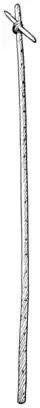 Digging stick. The earliest agricultural implement was the digging stick. It was used in planting maize and other crops, as a lever to pry out bushes when clearing the ground, as a pick when digging irrigating ditches, and in case of surprise it made an effective weapon of defense. It was made of ironwood or from the spiny tree, Zizyphus lycioides.[8] The short handle necessitated a crouching or sitting position by the operator. (Fig. 10, a.)