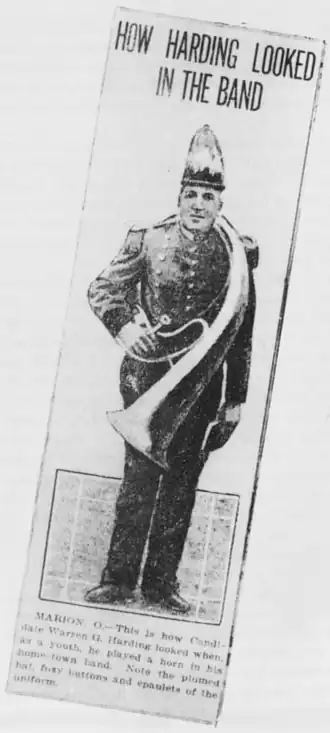 Despite the fact that I cut out and preserved pictures of him in his band uniform, I have always been unable to visualize a youthful Warren Harding in any capacity. He always seemed to me too dignified to have ever been less than the statesman I first beheld; yet he said that he felt far more eminently important and dignified as a member of the Caledonia Band than as United States Senator from Ohio!